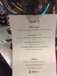 A favourite place of ours is Café Del Arte, they serve lunch, dinner, coffee and drinks. Café Del Arte is a combination of a restaurant / bar with an art Gallery. It is a very interesting a venue and the menu does change. Below is an example from a recent menu.